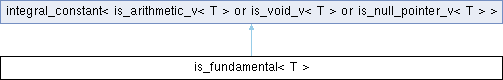 If T is a fundamental type (that is, arithmetic type, void, or nullptr_t), provides the member constant value equal true. For any other type, value is false. More...